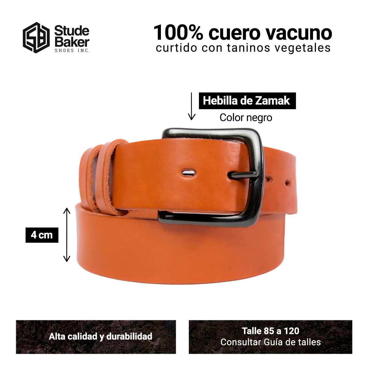 El cinturón Detroit esta compuesto por una resistente lonja de cuero vacuno vegetal de 4.0 cm de ancho, de alta calidad y durabilidad. Posee doble pasador y hebilla de zamak color Negro.