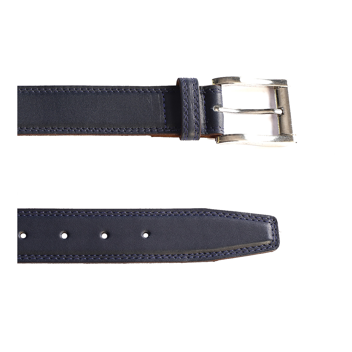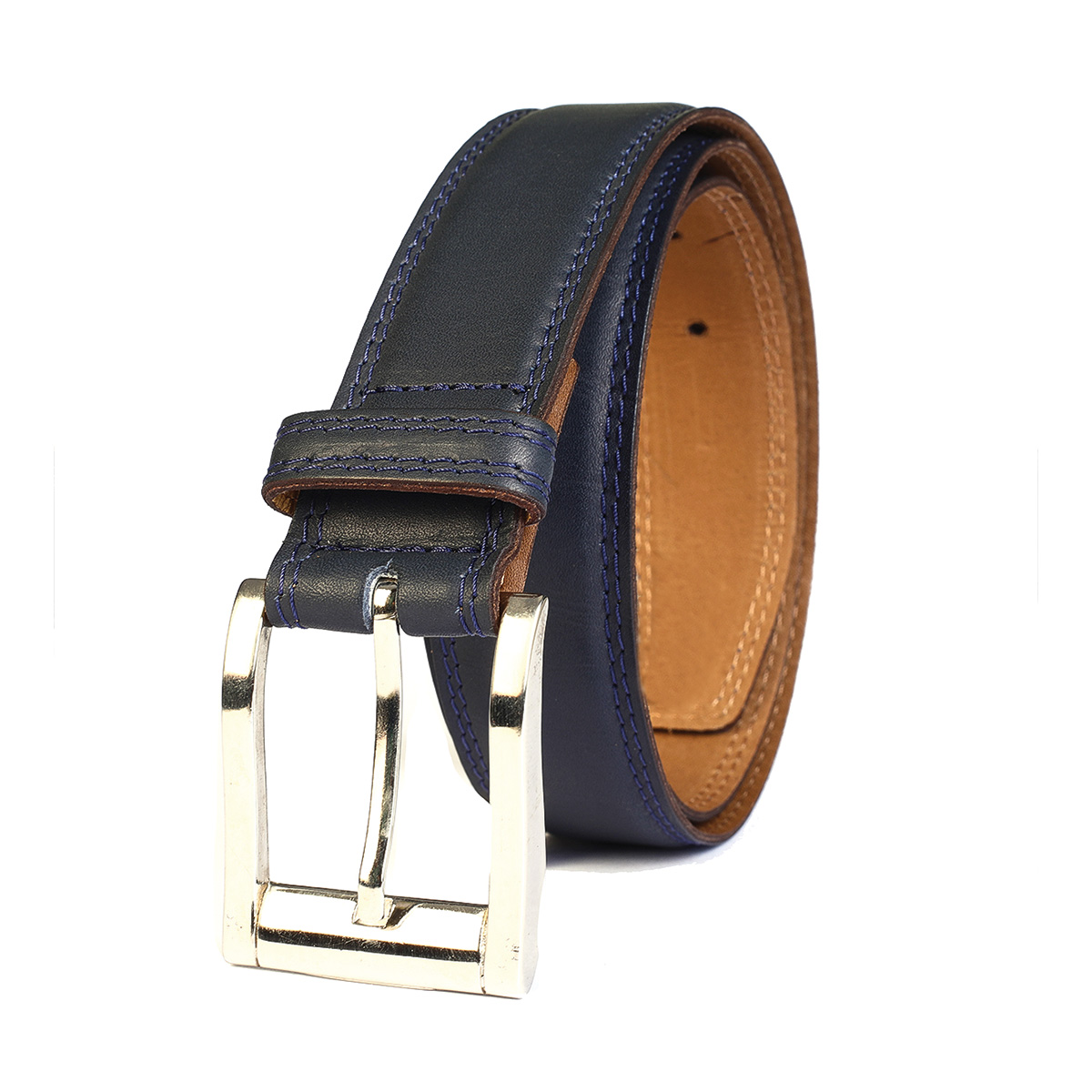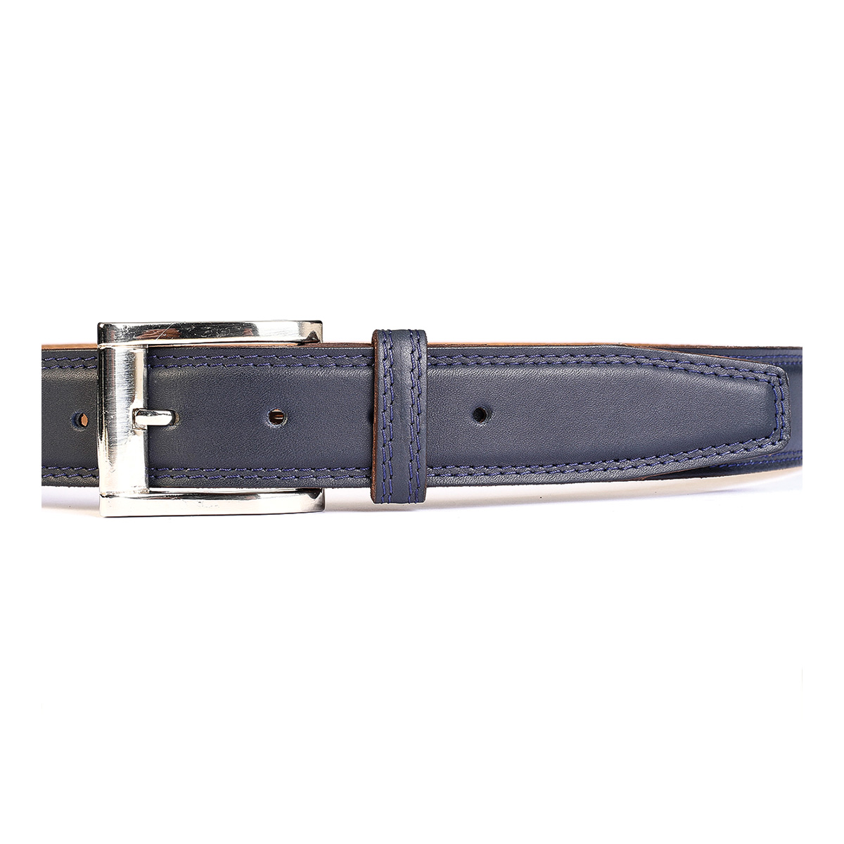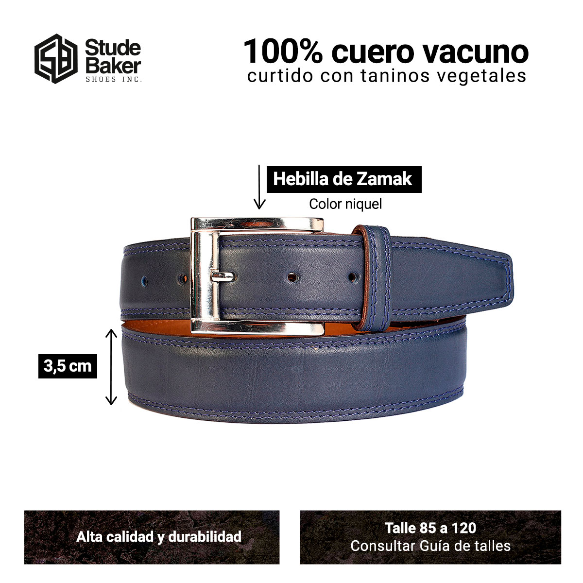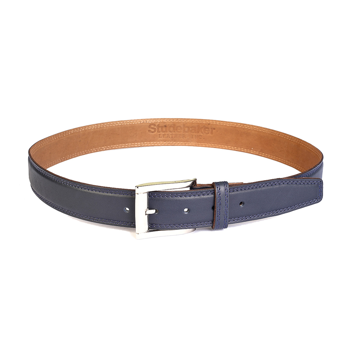 Cinturon Studebaker Doble Costura Cuero Azul